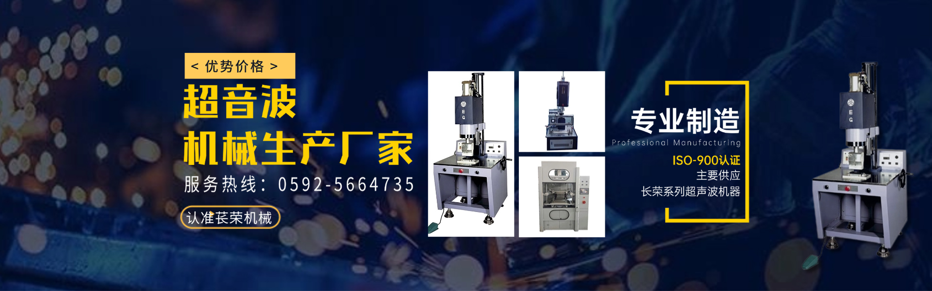 廈門萇榮機械設備有限公司是長榮超音波集團在福建設立的公司,我們主要供應臺灣長榮系列超聲波機器。 長榮超音波集團成立于1991年,麾下的兩個生產基地,分別建立在臺灣和上海,公司主要專業設計指導各種塑料焊接、超音波相關機械、模具及以本業為核心結束各類自動化專用設備。 廈門萇榮機械設備有限公司是集生產、銷售、模具制造、非標自動化設計制造、售后服務為一體的超音波設備福建公司,集團公司及本公司成立二十余年來,設備技術日趨完善,并通過ISO-900認證,在超聲波行業有良好的信譽。 目前我公司產品系列有: 1)超聲波塑膠熔接設備及模具; 2)高精度自動追頻超聲波焊接機; 3)超聲波縫制機系列; 4)超音波清洗系列; 5)熱板式焊接機系列及模具; 6)汽車零部件生產設備; 7)各種非標專用機設備設計與制造。